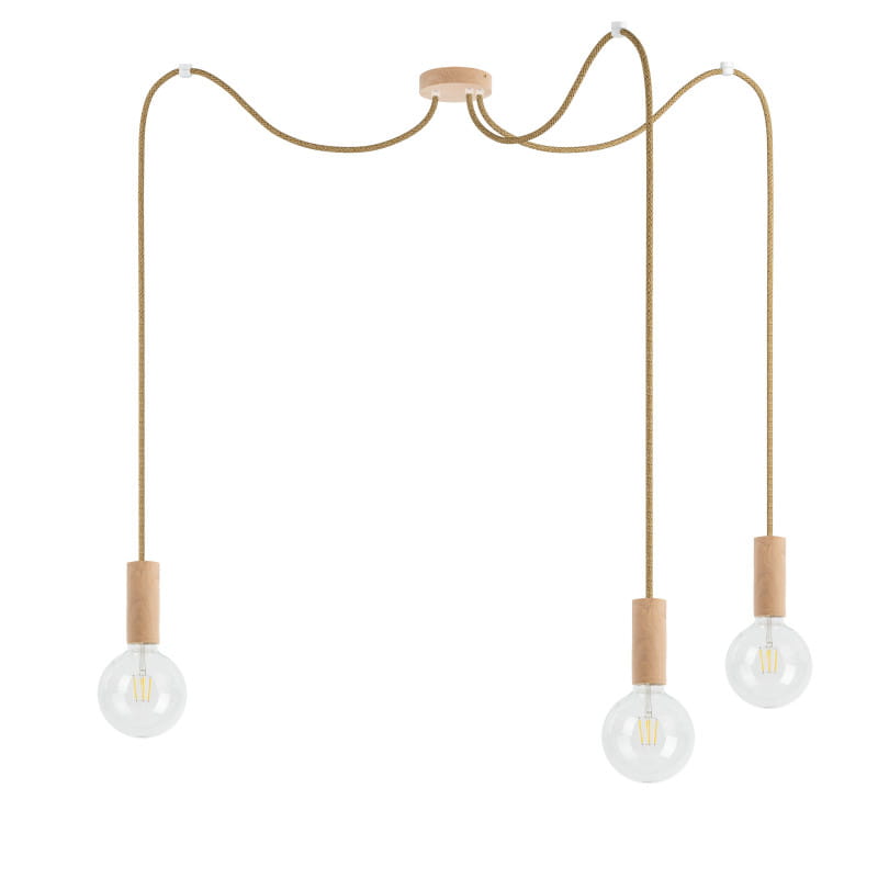Potrójna drewniana lampa wisząca Loft Multi Eco Line X3 TYP B KOLOROWE KABLE