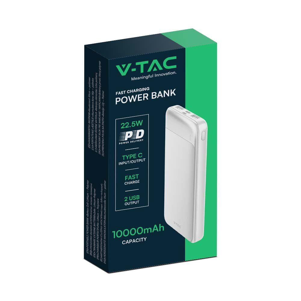 Power Bank V-TAC 10000mAh Biały 2xUSB Type C SZYBKI 22,5W V-TAC VT-10005
