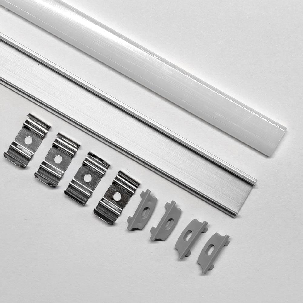 • W zestawie, klosz mleczny, profil 2 metry, 4 zaślepki końcowe, 4 uchwyty montażowe