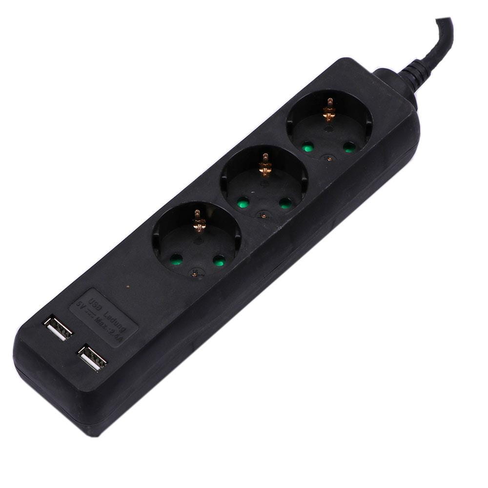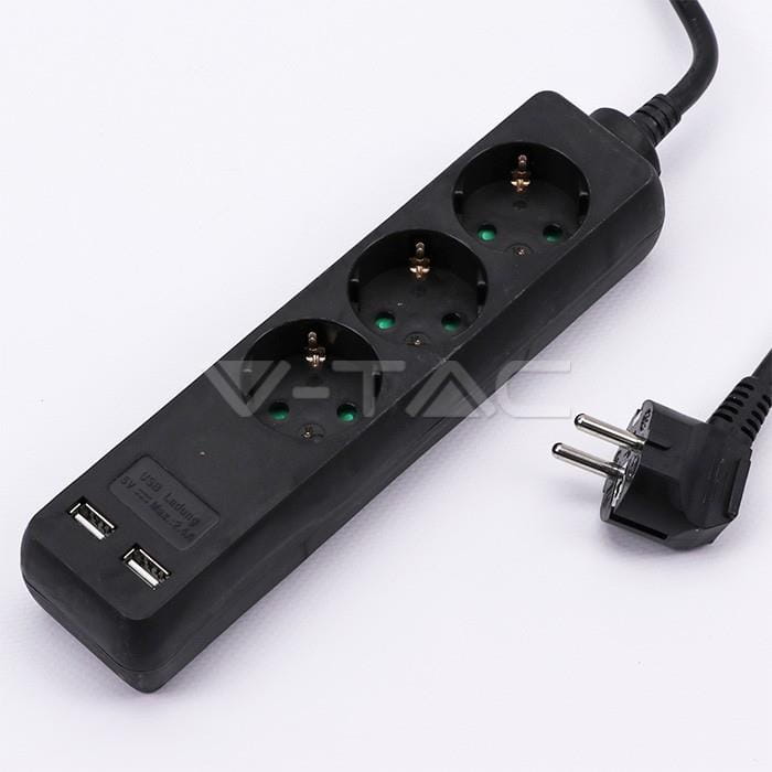 Przedłużacz 3 gniazda V-TAC 2 porty USB (3G 1.5MM2 X 1.5M) Czarny VT-1125