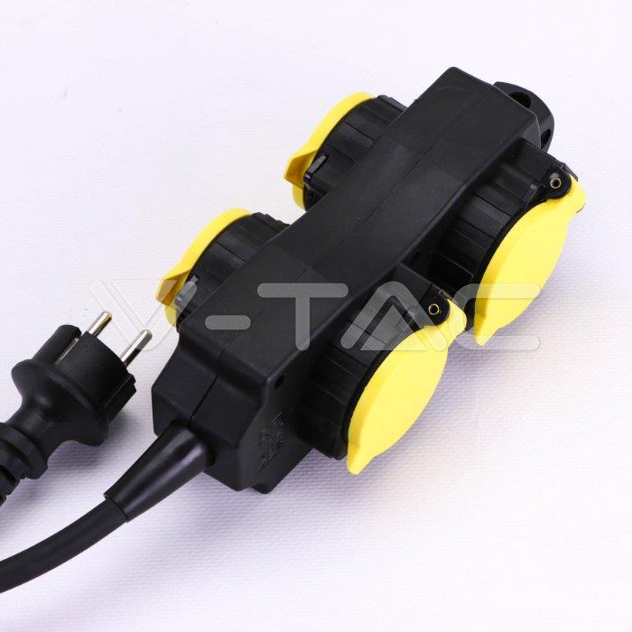 Przedłużacz Ogrodowy V-TAC 4 Gniazda z klapką 3m, Podświetlany Włącznik, IP44 Czarno/Żółty Schuko VT-1124-3