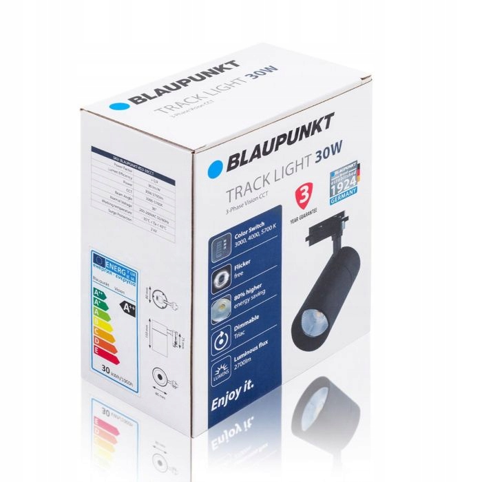 Dzięki możliwości zmiany barwy światła na jedną z trzech dostępnych oraz możliwości zmiany intensywności strumienia światła, reflektor 3-fazowy LED Blaupunkt Vision to bardzo praktyczne oświetlenie. Reflektor oferuje światło o jasności 2700 lumenów, pobierając przy tym jedynie 30W mocy. Trójfazowy reflektor LED Blaupunkt Vision to niezwykle praktyczne oświetlenie do biur i przestrzeni sklepowej. Idealnie podkreśli atuty towarów oraz wpłynie pozytywnie na nastrój pracowników.