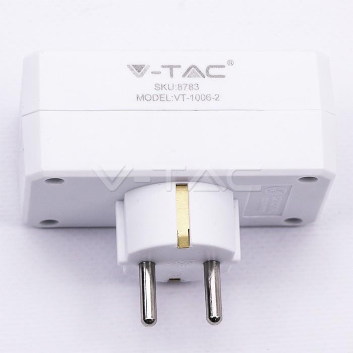 Rozgałęźnik 2x 10/16A 250V V-TAC Biały VT-1006