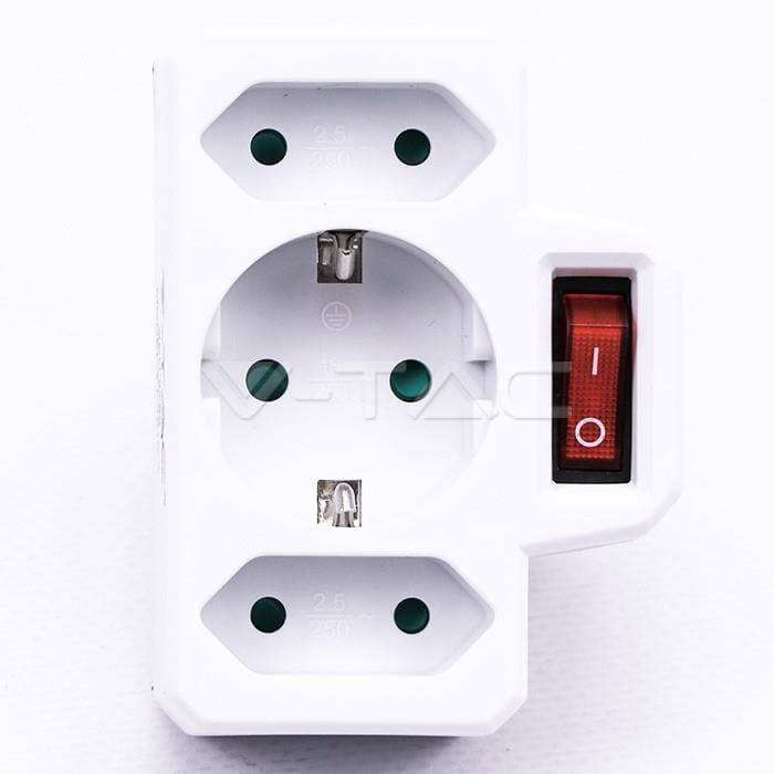 Rozgałęźnik 3x (2+1) z włącznikiem 16A 250V V-TAC VT-1010