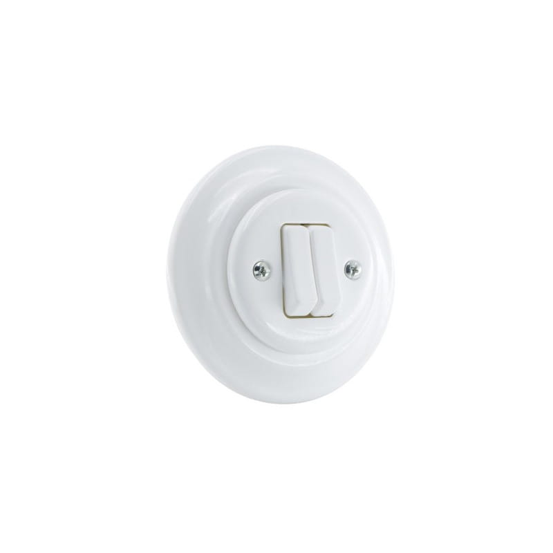 • włącznik światła • podtynkowy z ramką • podwójny klawiszowy • kolor biały • materiał wykonania ceramika powlekana porcelaną • odległość od ściany 40mm • średnica z ramką 110mm • średnica bez ramki 100mm • IP20 • 10AX 250V