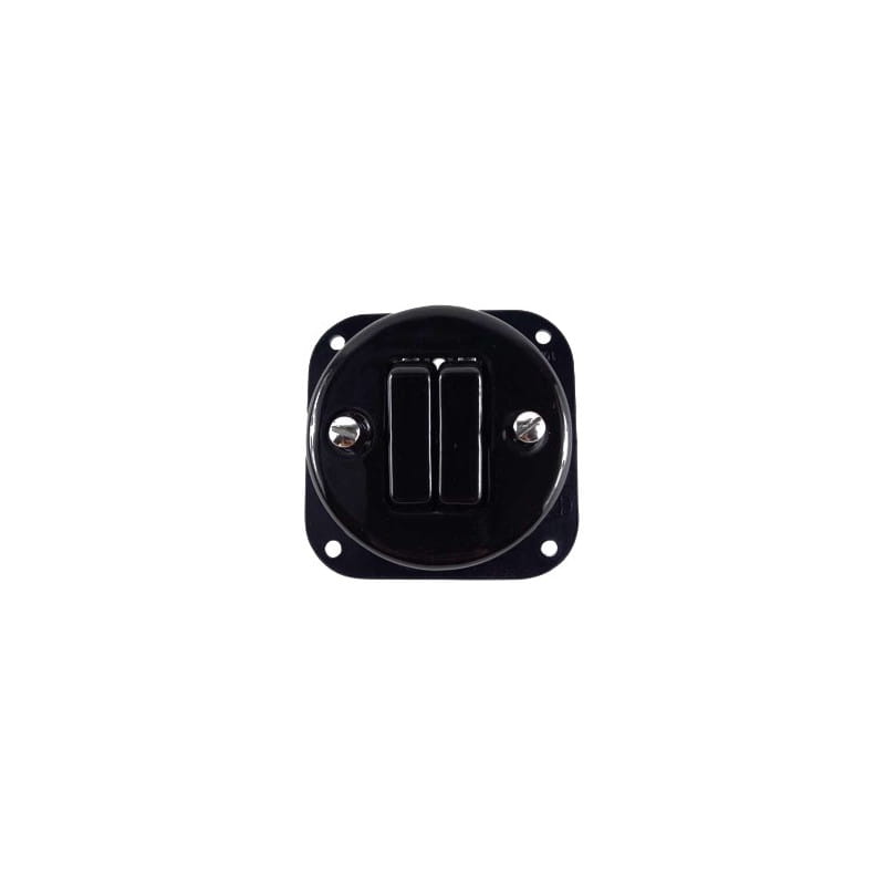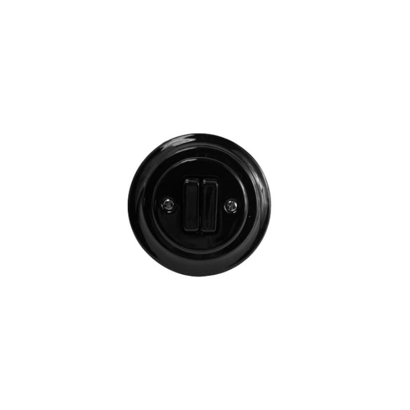 • włącznik światła • podtynkowy z ramką • podwójny klawiszowy • kolor czarny • materiał wykonania ceramika powlekana porcelaną • odległość od ściany 40mm • średnica z ramką 110mm • średnica bez ramki 100mm • IP20 • 10AX 250V