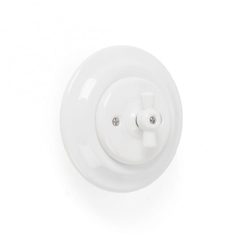 Rustykalny ceramiczny włącznik światła świecznikowy w stylu retro - włącznik podtynkowy biały z ramką pojedynczą Antica Alkri