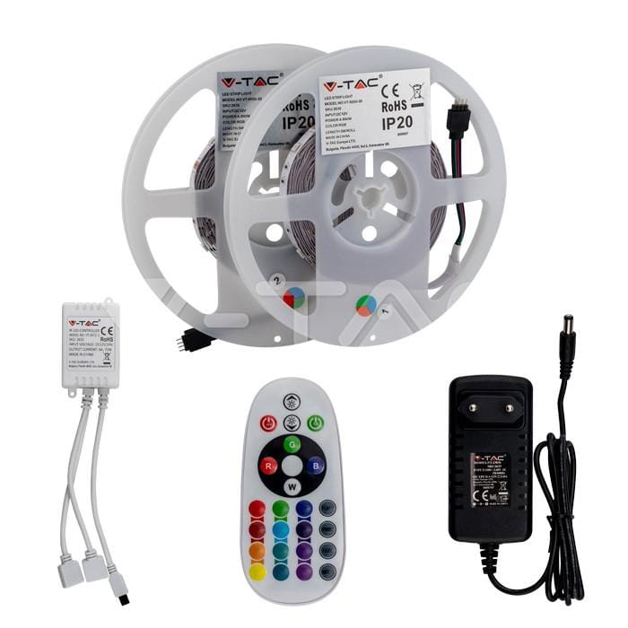 Taśma LED V-TAC Zestaw RGB SMD5050 2x5mb Pilot Sterownik Zasilacz VT-5050-300 RGB 500lm