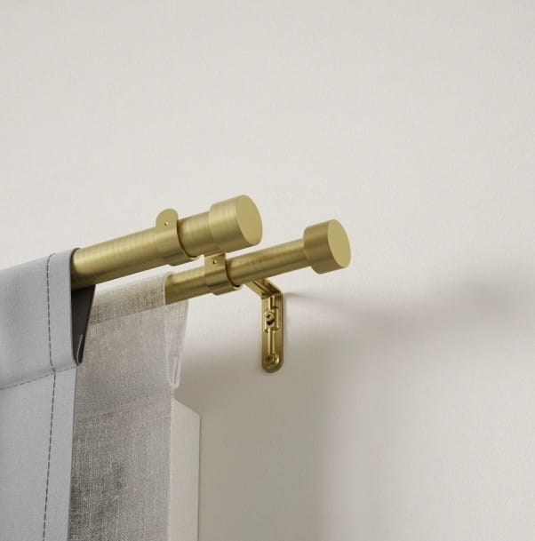 UMBRA podwójny karnisz CAPPA 91 - 168 złoty. Wykonana z wysokiej jakości metalu, która zapewni nam maksymalny komfort podczas korzystania. Bez najmniejszych przeszkód można ją regulować w zakresie konfiguracji 1 lub 2 paneli zasłonowych w zależności od potrzeb. Można na niej bez problemu zawiesić różnego rodzaju zasłony o masie całkowitej do 10 kg. Jego prosta budowa dopasuje się do każdego rodzaju wnętrz. Pręt o średnicy: 2,5 cm zawiera tylny pręt o średnicy 3/4 Pręt o średnicy: 3,2 cm zawiera tylny pręt o średnicy 1 Długość: 33-36 obejmują 2 wsporniki, wszystkie pozostałe zawierają trzy wsporniki Waga: 1,1 kg.