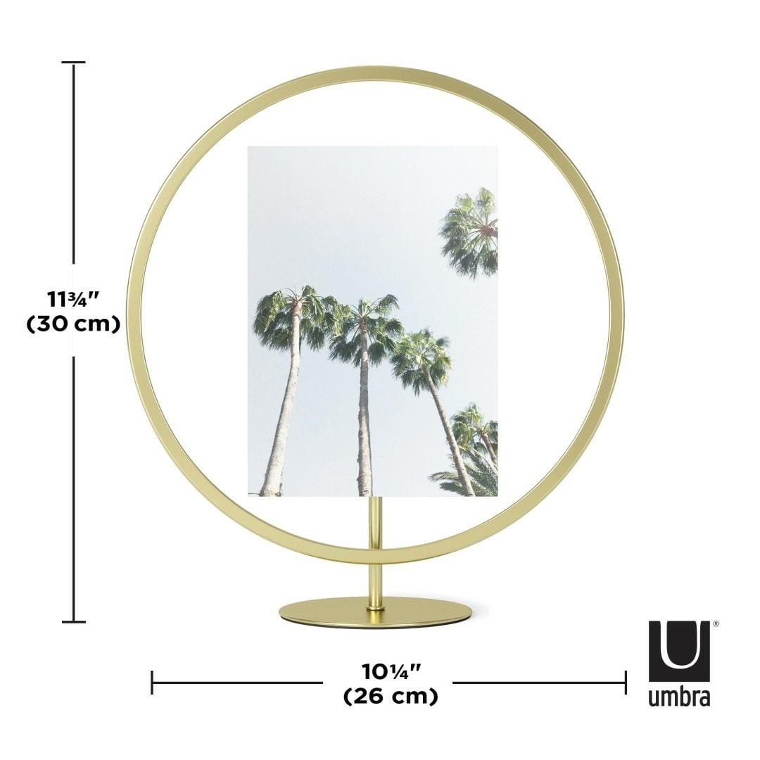 UMBRA ramka na zdjęcia INFINITY okrągła w kolorze złota. Oryginalny design i eleganckie wykończenie uzupełniają wykonanie tej wyjątkowej ramki. Dzięki ruchomej ramce możemy w niej umieszczać zdjęcia o wymiarach 10 cm × 15 cm oraz 13 cm × 18 cm. Mogą być umieszczane w pozycji pionowej, jak i poziomej. Doskonale będą wyglądać jako dekoracja ścienna lub na stołach w jadalni czy sypialni. Waga: 0,69 kg.