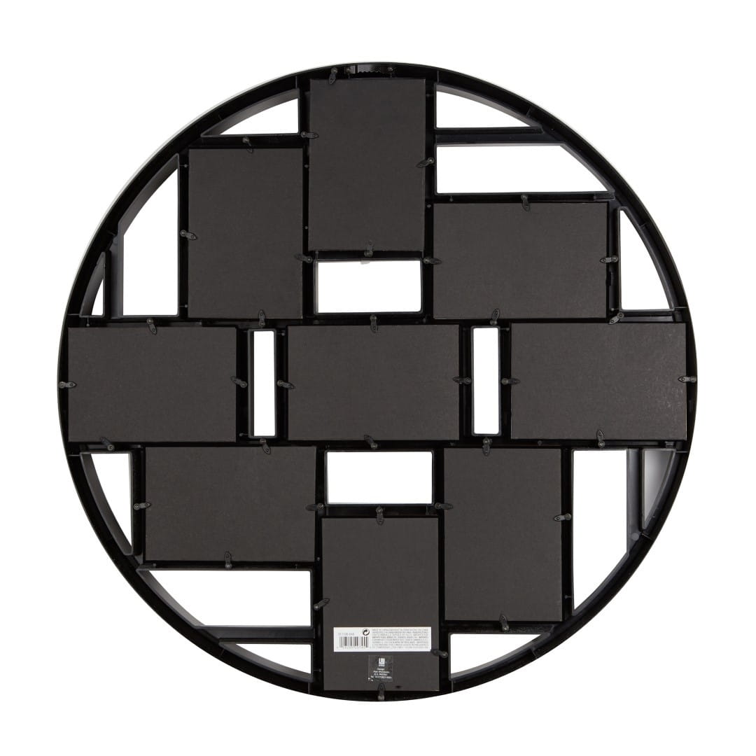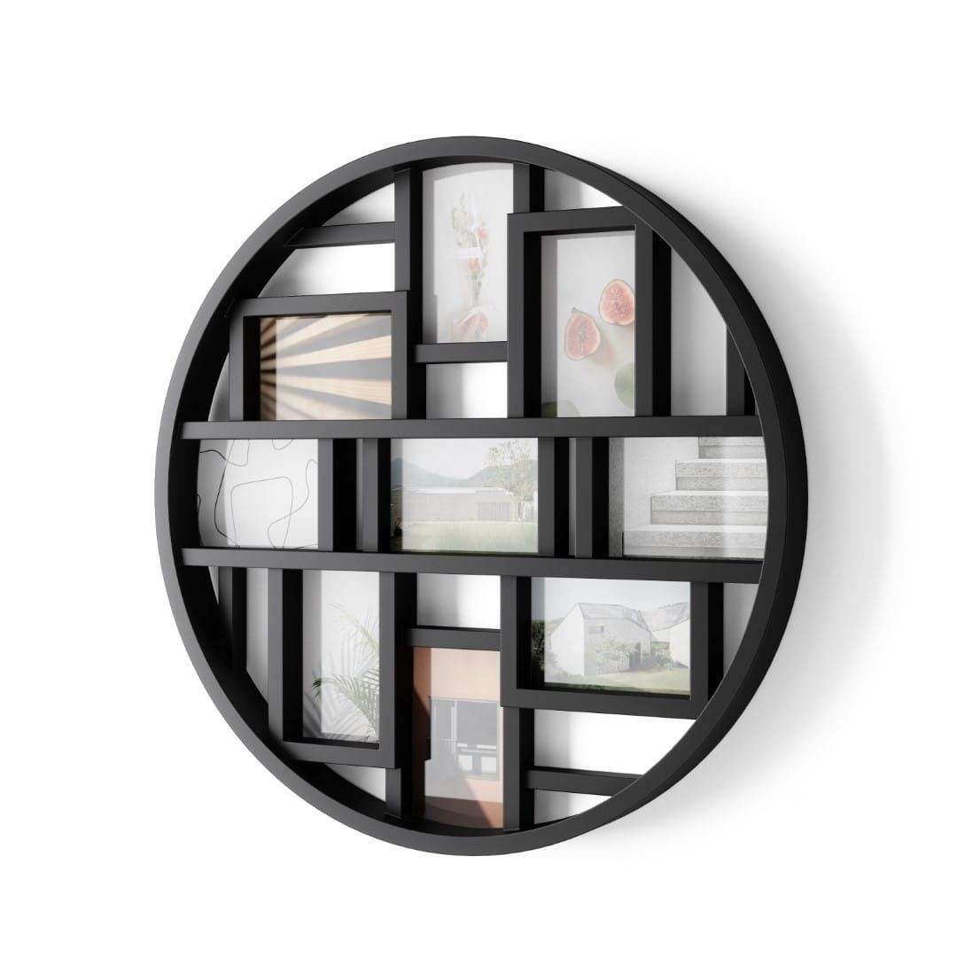 UMBRA ramka na zdjęcia LUNKA koloru czarnego. Ramka na zdjęcia Luna stanie się prawdziwą gwiazdą, a dokładnie rzecz biorąc księżycem w każdym wnętrzu. Duża, okrągła rama o średnicy aż 58 cm, podzielona została na symetryczne, mniejsze części, wśród których znalazło się miejsce dla dziewięciu zdjęć w rozmiarze 10 cm x 15 cm. Prosta forma i geometryczne kształty sprawiają, że Luna sama w sobie stanie się ozdobą, tym bardziej że widoczne na zdjęciu ilustracje są również częścią produktu. Nie jest więc konieczne uzupełnianie ramy własnymi zdjęciami. Wykonana z najwyższej jakości plastiku, ramka Luna może zostać zamontowana na dwa sposoby, w zależności od tego ile ujęć pionowych, a ile poziomych planujemy w niej umieścić.