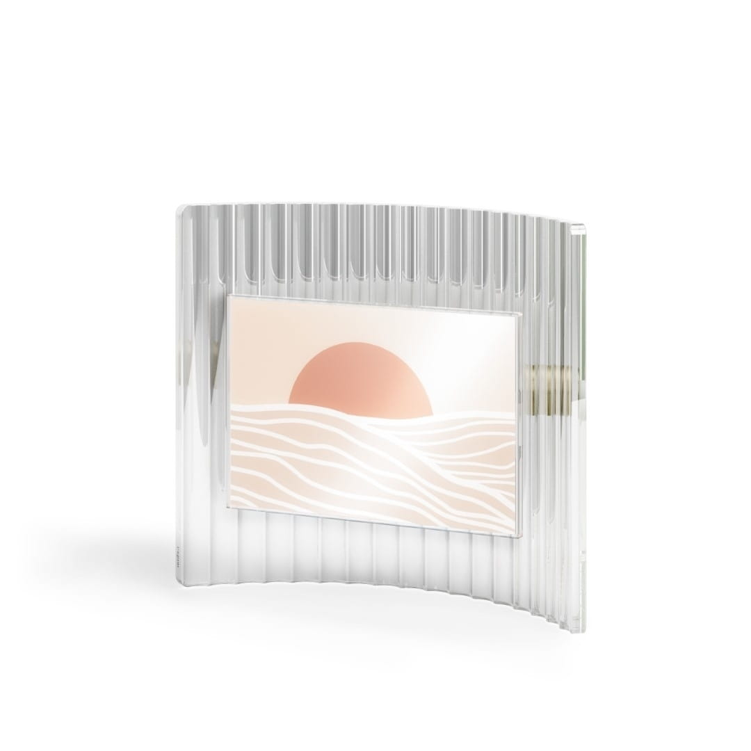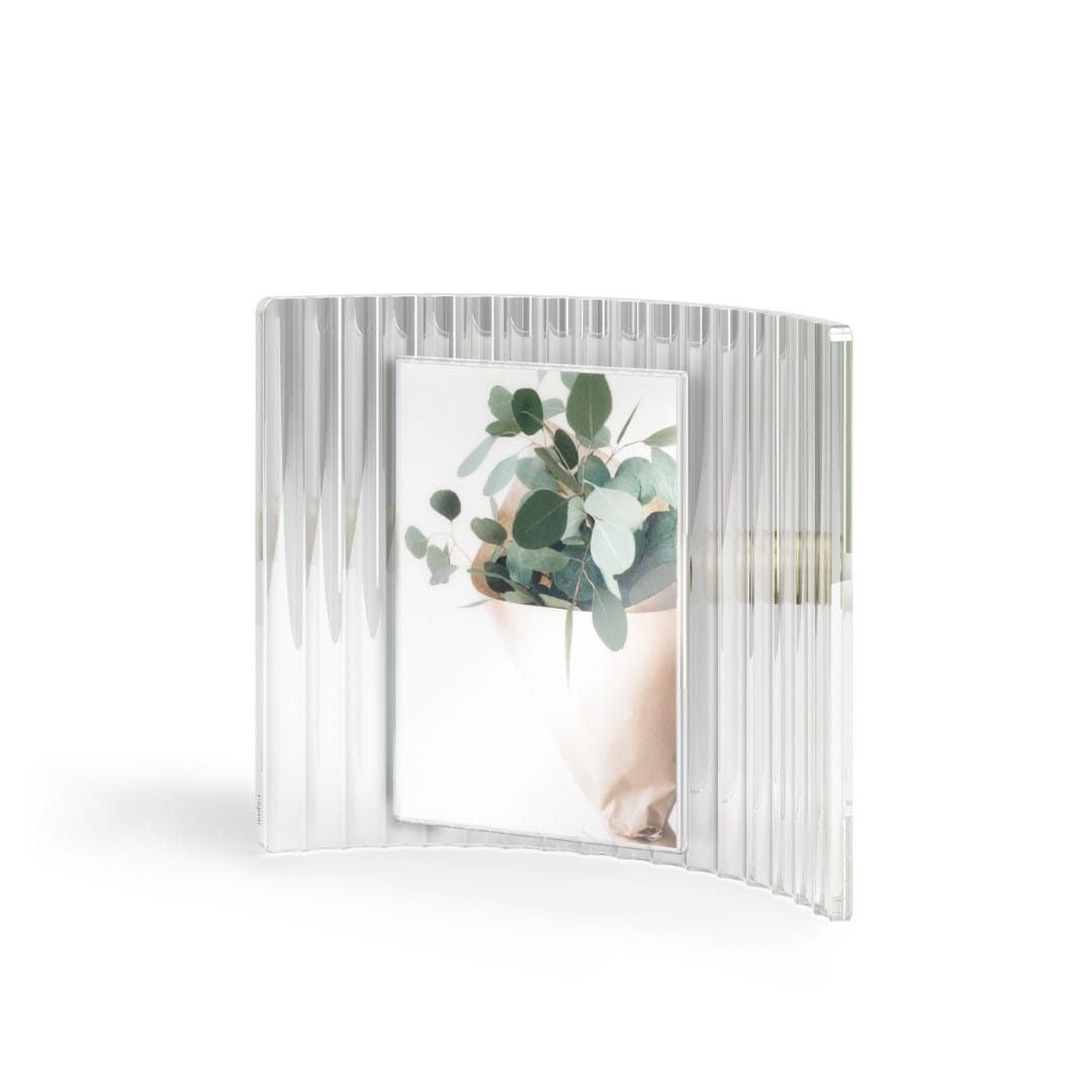 UMBRA ramka na zdjęcia RIPLEY o wymiarach 4 cm x 6 cm. Zaprezentuj swoje ulubione zdjęcia w wyjątkowy i elegancki sposób dzięki ramce do zdjęć Ripley. Ramka ma prążkowany podkład ze szkła, a jego zakrzywiony łuk dodaje miękkości i nowoczesności. Oglądaj zdjęcia w orientacji poziomej lub pionowej, po prostu odkręcając pokrętło i zmieniając orientację ramki.