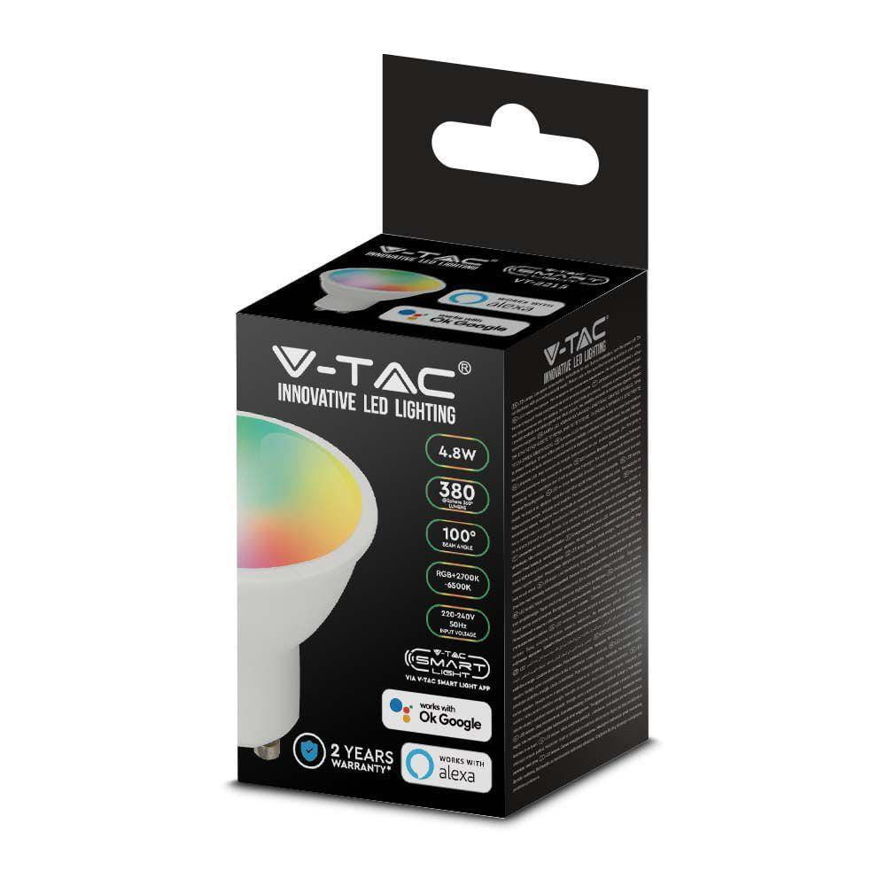 Żarówka LED SMART WiFi V-TAC 4.8W GU10 Amazon Alexa Google Home VT-2215 RGB+2700K-6500K 380lm