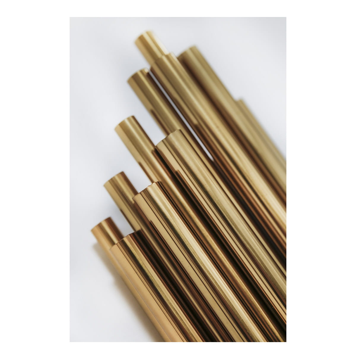 Kinkiet wykonany w całości ze złotej stali szczotkowanej, jest połączeniem złotych rurek, jest łatwy w montażu i pielęgnacji.